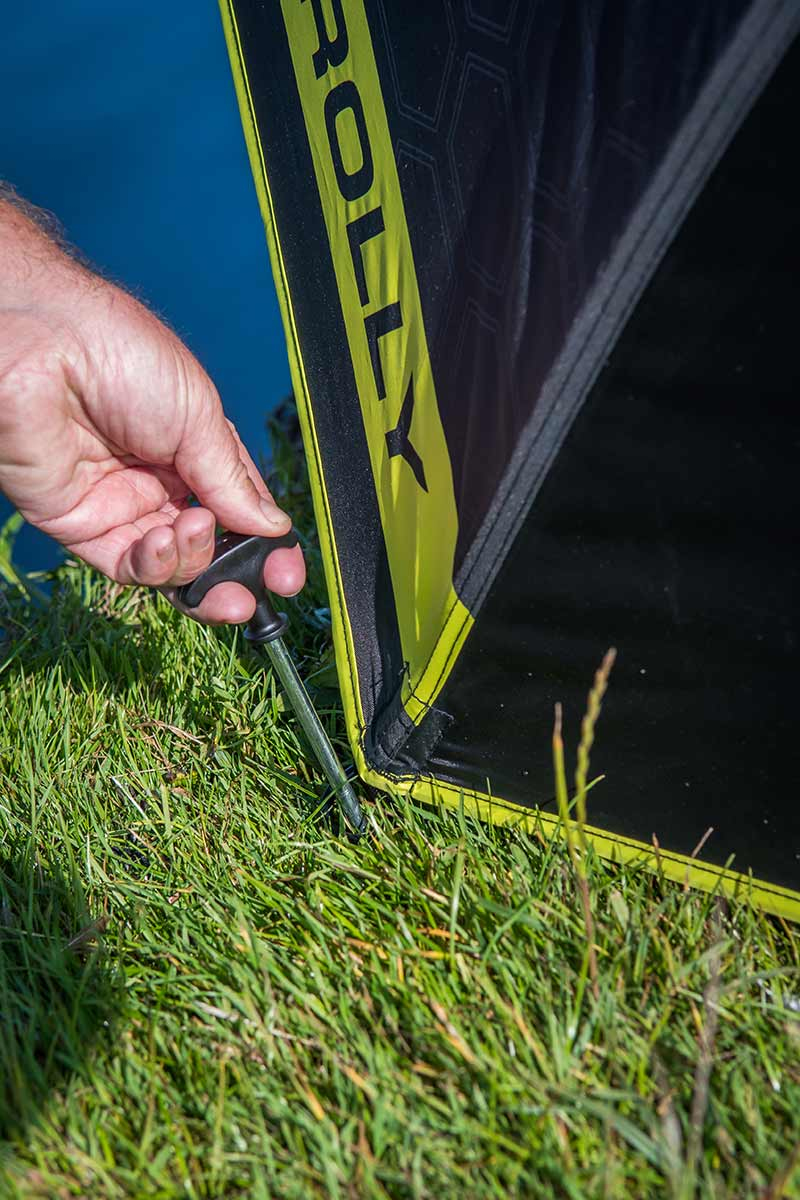 - Tři kotevní body umístěné podél rovné základny umožnují bezpečené kotvení ve větrném počasí