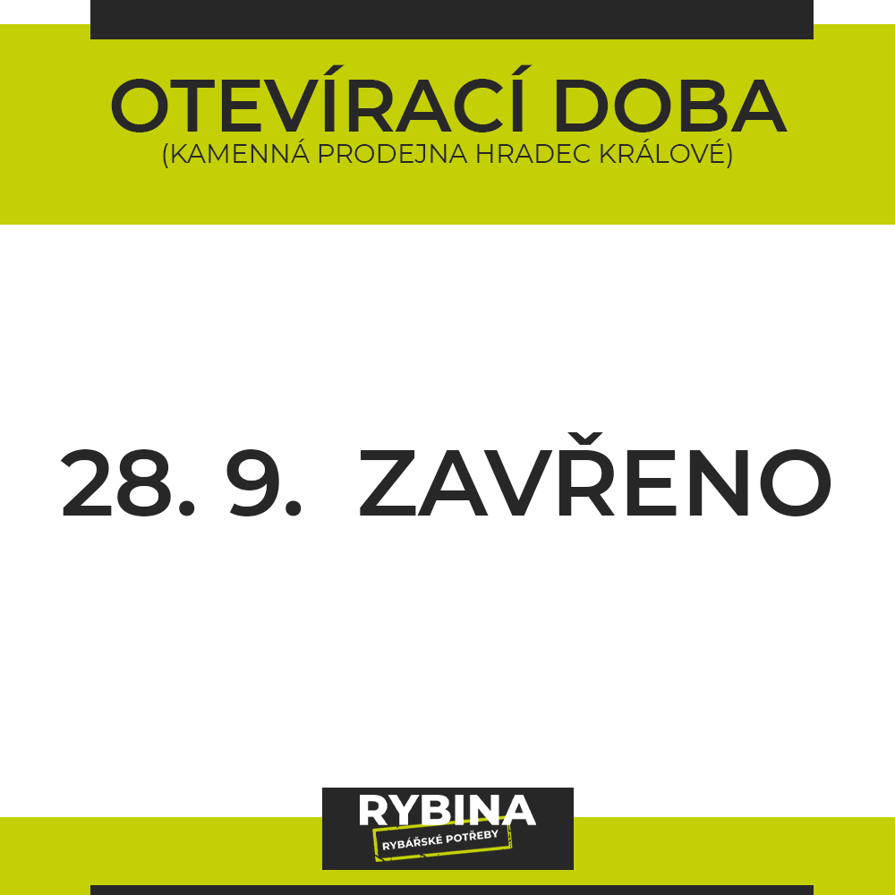 Prodejna Rybina byla založena v roce 2009 v Hradci Králové. Myšlenka zřídit rybářské potřeby vznikala postupně s cílem nejen splňit si svůj sen, ale hlavně podělit se o své zkušenosti s rybařením i s ostatními zastánci tohoto jedinečného koníčku a sportu. Jsme dlouholetí rybáři, proto se budeme snažit poradit Vám jak s výběrem rybářských potřeb, tak i s otázkami ohledně rybaření. Naše rybářské potřeby jsou prezentovány kamennou prodejnou v Hradci Králové a e-shopem Rybina.cz. Prodejna rybářských potřeb se nachází v Malšovicích v areálu u pošty, poblíž obchodního domu Futurum. Hlavní cesta pokračuje do nedaleké rybárny, kde sídlí Rybářský svaz. Prodejna byla v roce 2013 rozšířena na 150 m2 plochy a s tím i výběr rybářských potřeb našich i světových značek. Začátkem nového roku 2016 čeká prodejnu další rozšiřování co do velikosti i sortimentu, takže všichni milovníci rybařiny se májí na co těšit a tímto Vás srdečně zveme na návštěvu.
