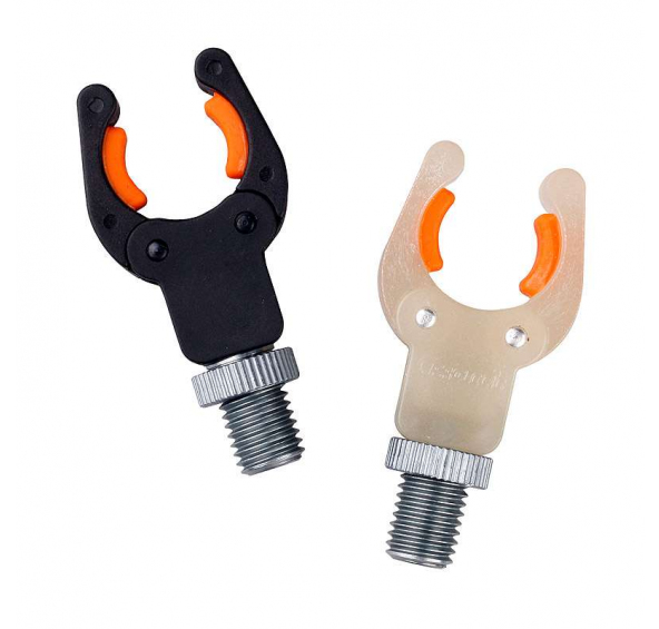Pružinová rohatinka pro bezpečné uložení prutu, která má hliníkový závit.