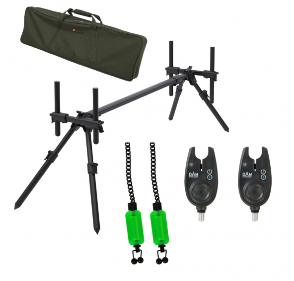 Popis produktu Prologic Stojan Twin Sky 2 Rod Multi Pod + 2x Mad Signalizátor Bite Indicator + 2x Dam Hlásič Screamer Bite Alarm Blue