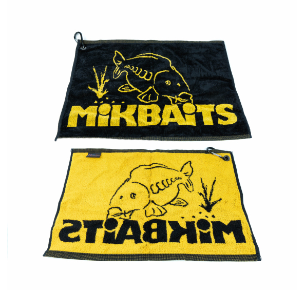 Ručník Mikbaits je šitý z vysoce kvalitního a hebkého materiálu v Anglii. Z jedné strany je žlutý s černým logem, ze strany druhé černý se žlutým logem Mikbaits. Součástí ručníku je kvalitní karabina na pověšení. Rozměr 50 x 35 cm.