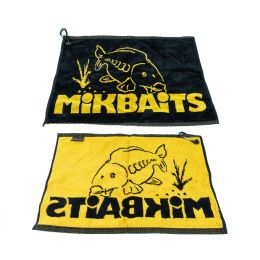 Ručník Mikbaits je šitý z vysoce kvalitního a hebkého materiálu v Anglii. Z jedné strany je žlutý s černým logem, ze strany druhé černý se žlutým logem Mikbaits. Součástí ručníku je kvalitní karabina na pověšení. Rozměr 50 x 35 cm.