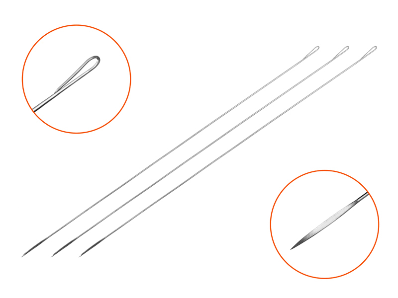 Ve výbavě každého lovce dravých ryb nesmí chybět prošívací jehla. Speciální tvar hrotu společně s tloušťkou drátu jehly umožní bezproblémové našití nástražní rybky přímo pod kůži. Díky upravené tloušťce jehla neztrácí svoji pevnost, ale zároveň je šetrná vůči nástraze. Jehla je ukončena očkem, do kterého můžete uchytit lanko a bez problémů si nástrahu připravíte na lov. Mysleli jsme také na ztrátu jehly, a proto jsme se rozhodli do balení umístit tři kusy pro každý případ.