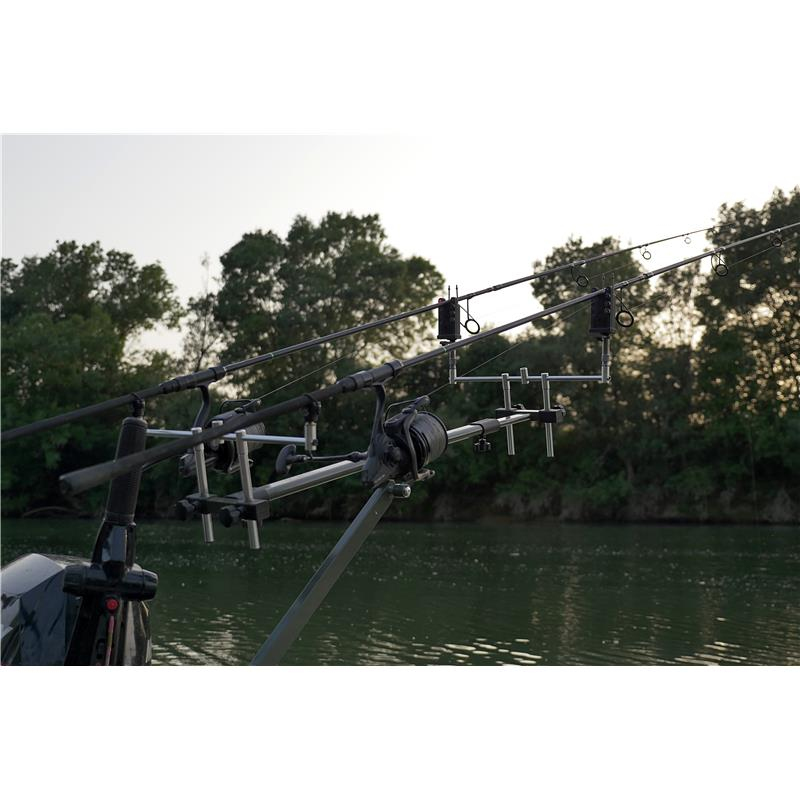 Stojan Rod Pod MK2 na tři pruty k ukotvení na loď nebo ponton. Róbustní kostrukce zaručuje trvanlivost a odolnost při rybaření. Systém uchycení stojanu shodný se systémem uchycení motorů. Ideální pro dobrudružné rybáře pro ještě větěší zážitek právě z chytání ze člunu. Ideální uchycení na přiď nafukovacího člunu nebo na zádi sklolaminátového nebo hliníkového člunu. Specifikace: - odolná a robustní kovová konstrukce - ocelové hrazdy a ramena stojanu - délka nastavení ramen stojanu: 72-130 cm - šířka: 40 cm - systém uchycení shodný se systémem uchycení motorů