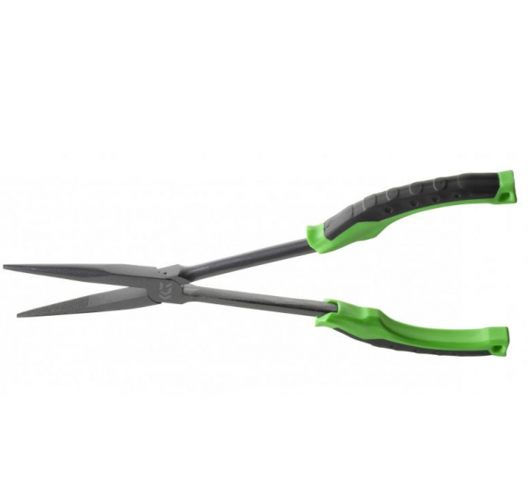 Extra dlouhé a odolné vyvrhovací kleště vyrobené z nerezavějící oceli. Ideální pro uvolnění hluboko zaseknutých háčků a nástrah. Teflonový povrch omezuje riziko rezivění. Ergonomické, protiskluzové úchytky.