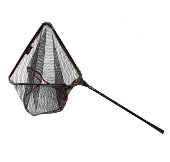 Podběrák z černě eloxovaného hliníku, s pogumovanou sítí pro dlouhou životnost, měkkou rukojetí a 75 cm dlouhou sklopnou tyčí. Hloubka sítě je 50 cm, vnitřní velikost rámu 50/50/50 cm. Součástí podběráku je i karabinka pro připojení k opasku.