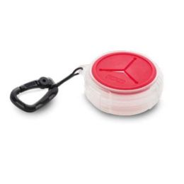 Praktická krabička na odpad jako kousky vlasce či šňůry nebo poškozené háčky. Magnet na dně krabičky brání kovovým kouskům chrastit. S karabinou k připnutí k dalšímu vybavení a snadnému přístupu. Průměr 9 cm.