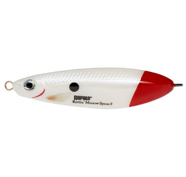 Rattlin Minnow Spoon 08 PWRT - zvuková verze osvědčené nástrahy Rattlin Minnow Spoon je třpytka, která se výborně hodí pro lov v zarostlých místech. Pro svůj třpyt je viditelná v bohaté spleti rostlin. Minnow Spoon během svého ”potloukání” mezi rostlinami občas klesá ke dnu. Díky ochraně proti nežádoucímu zachycení ( drátek kryjící háček ) nevázne ani v nejhustší spleti vodního porostu. Účinnost této nástrahy můžeme zvýšit přerušovaným navíjením, kdy se ve chvilce přestávky třpytka potápí mezi rostliny a vyhledává ryby číhající pod porostem, při dně. Vhodná je pro sladkovodní rybolov i rybolov v brakických vodách. S touto nástrahou budete úspěšní i v místech, kde jiné nástrahy selhávají!