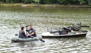Na Jaroslav jsme přijeli po 12-té hodině, pan Korda se správcem Pepou nás vřele přivítali, Pepa nám pomohl naložit lodě a ve velkém vedru jsme se vybrali přes jezero na domluvený flek č. 7. Postavili jsme bivaky, vybalili to nejnutnější a vyjeli...