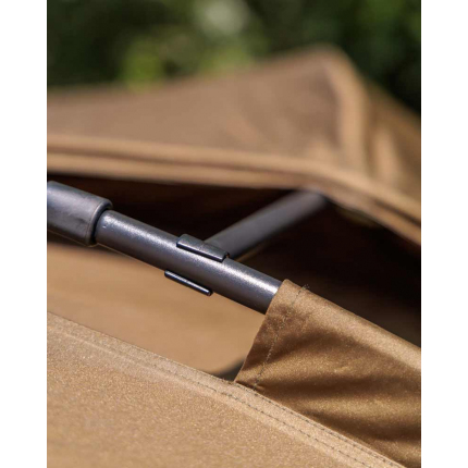 - Unikátní rozšiřující rám pro připojení bouřkových tyčí v přední části rámu umožňuje velmi pevné připojení a celkově velmi pevnou konstrukci přístřešku.