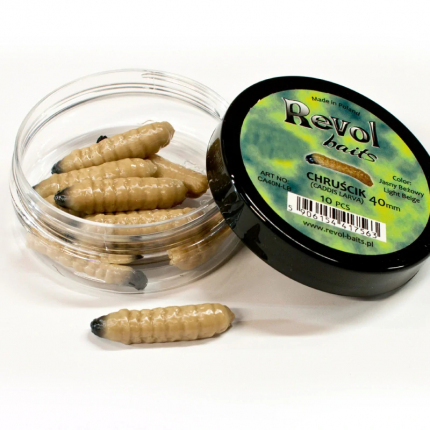 Revol Baits nástraha Caddis Larva 40mm příchuť krevetka, barva světle béžová 10ks