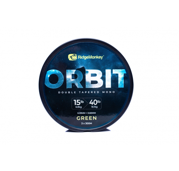 Popis produktu RidgeMonkey Vlasec RM-Tec Orbit Double Tapered Mono 0,33-0,60mm 15-40lb 3x300m Green