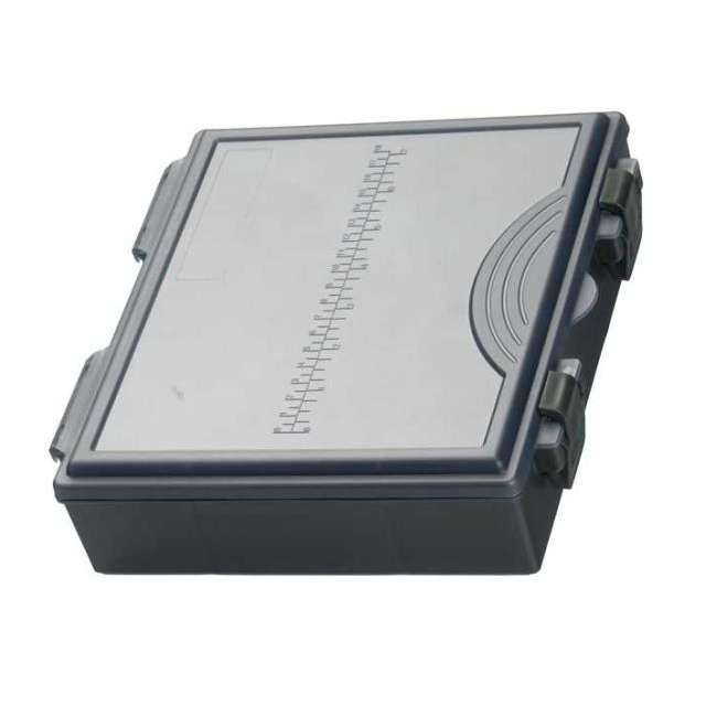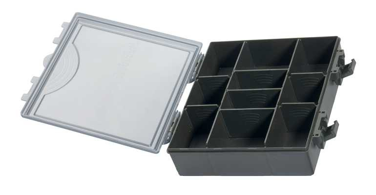 Krabička na příslušenství z odolného plastu s posuvnými přihrádkami.
