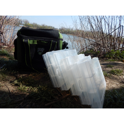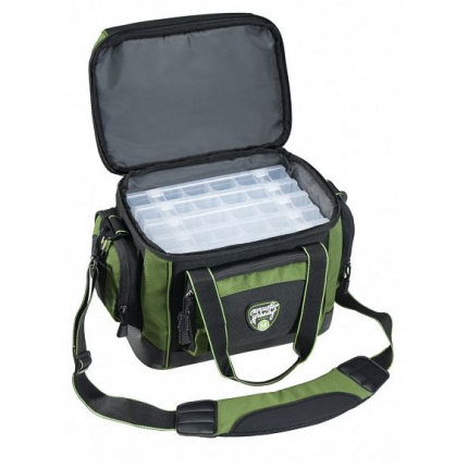 Prostorná taška na nástrahy a veškeré příslušenství pro lov na přívlač. Obsahuje 5 velkých krabiček na nástrahy. Velká kapsa ve víku a tři postranní kapsy umožňují přehledné uložení dalšího příslušenství. Popruh přes rameno s kvalitním polstrováním zaručuje pohodlné nošení....