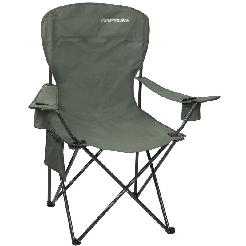 Zcela nová řada sedaček v novém elegantním provedení s potahem ve dvou zelených odstínech z "Oxford" textilie 600D, který je nově potažený PVC. Křeslo vyšší třídy od belgické firmy JAF Capture. Potah je odolný vůči povětrnostním vlivům a snadno omyvatelný. Praktická sedačka z boku s praktickou kapsou a organizérem. Sedačka je dodávána v tašce. Sklopný rám o průměru trubek 16 mm Široké opěrky na ruce a držák na dva nápoje Rozměry sedátka: 52š x 60h cm Výška sedátka: 48 cm Výška opěrky zad od země: 103 cm Nosnost: 110 kg