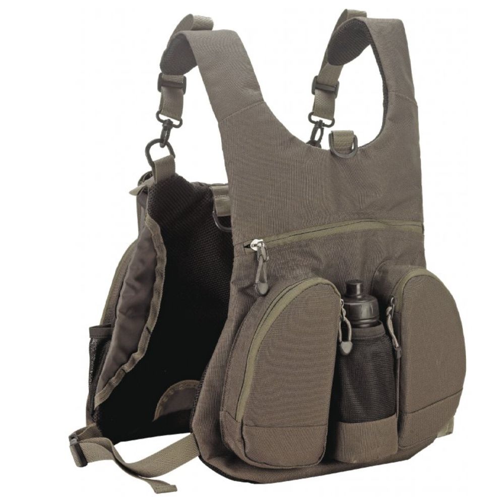 Rybářská vláčecí vesta Ice fish Excelent - Velmi kvalitní a dobře vybavená vláčecí vesta univerzální velikosti. Vesta je vybavena přední kapsou na zip s dýchací membránou, větší přední kapsou na zip, ve které je nepromokavá kapsa na zip na doklady a memránová přihrádka na drobnosti a dále tvrzený plát molitanu o velikosti 5 x 15 cm na zapichování nástrah. Za touto kapsou je ukryta další membránová přihrádka a kapsa na suchý zip ( mobilní telefon, peněženka ). V ukončení velké přední kapsy ve vrchní čísti jsou na každé straně vytahovací (teleskopické) karabiny na peán, nůžky,metr či jiné pomůcky. V zadní části vesty je velká kapsa s přihrádkou, dvě oválné kapsy na krabičky či drobnosti a přihrádka na plastovou láhev na pití, která je součástí vesty. Vesta potěší nejen svým solidním zpracováním, ale zejména svou variabilitou a funkčností.