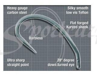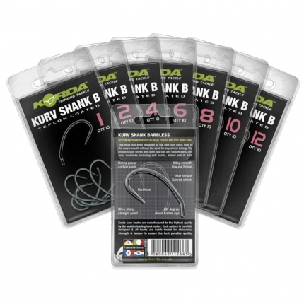 Verze bez protihrotu. Absolutní novinka z dílny firmy Korda. Háčky Kurv Shank B nabízí maximálně zvýšenou pevnost, tuhost, odolnost – zkrátka výjimečné háčky s neuvěřitelně ostrým hrotem. Teflonový povrch, který je neleskoucí se a nekorodující a dává háčkům firmy Korda vysokou ostrost a dlouhou životnost. Kurv Shank mají jeden z nejoblíbenějších tvarů, který minimalizuje možnost ztráty ryby během zdolávání. Očko háčku je vyhnuté dovnitř pod úhlem 28°. Háček se vyznačuje rychlým zásekem a díky jeho tvaru není zabotřebí rovnátka pro dosažení toho efektu. Mají rovnou špičku s maximální ostrostí a jsou vhodné jak pro plovoucí nástrahu, tak pro potápivou.