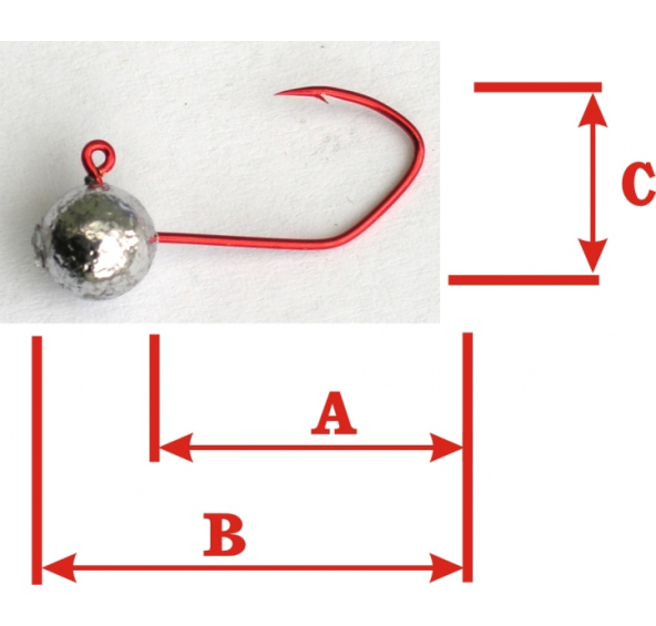 Popis produktu Rybářské jigy VMC Matzuo červený háček 3,0g/háčik 4, A2,1cm, B2,7cm, C1cm