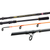 Ze břehu - vláčecí pruty volíme v délce 2,7m-3,0m, abychom byli schopni dostat nástrahu co nejdále do moře a prochytat tak větší část vody. Odhozovou zátěž volíme dle nástrahy a z pravidla se pohybuje mezi 20-100g. Pruty jsou osazeny kvalitními očky a vyrobeny z kvalitního blanku, který splňuje všechny požadavky rybolovu u moře.