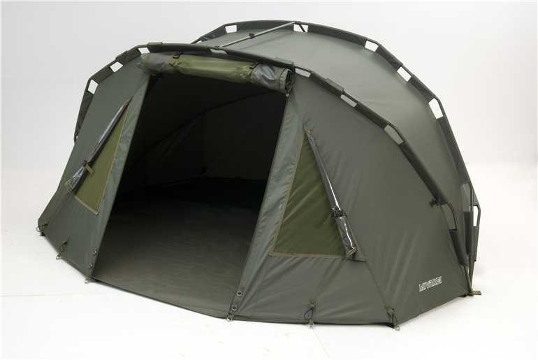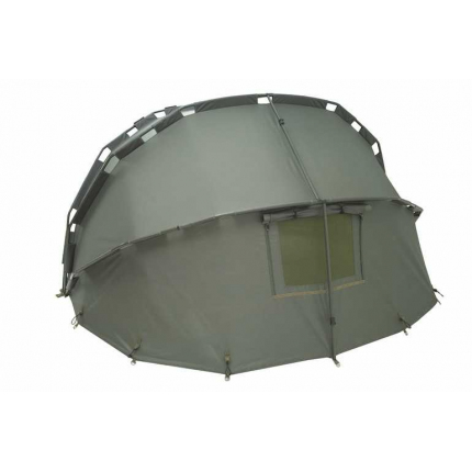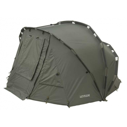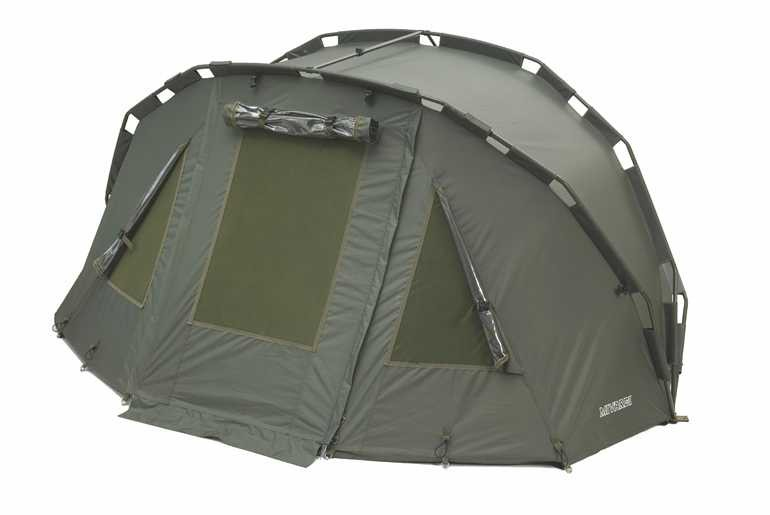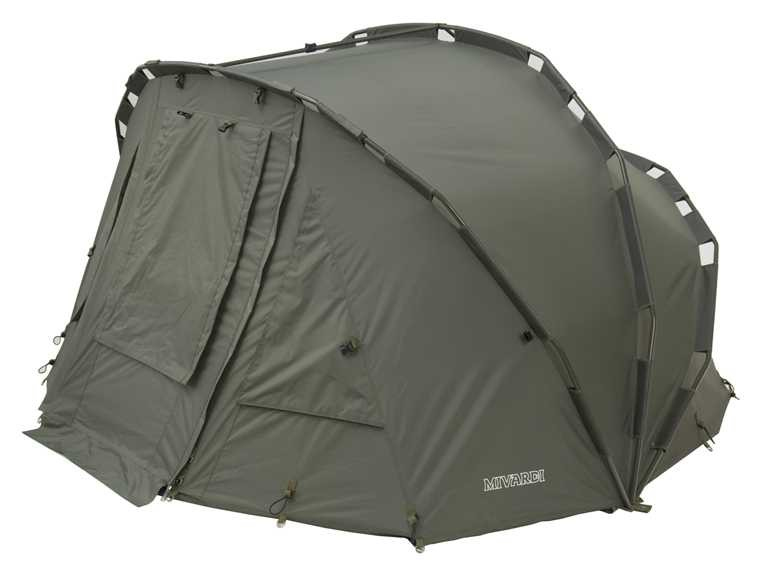 Bivak střední velikosti z materiálu M-Tec 410 s vodním sloupcem 10000 mm. Uvnitř najdete systém variabilního nastavení šířky, systém pro uchycení odnímatelné podlahy suchými zipy v kombinaci s bočními kovovými sponami a 10 závěsů na světla a další příslušenství. Táhla zipů Easy Grip jsou přizpůsobena pro vložení chemických světel. Na přední straně jsou 4 úchyty pro pruty, opřené o bivak a 3 třívrstvá okna (na dveřích a po stranách). Na zadní straně je rovněž umístěno otevíratelné okno, jištěné bočními zipy.