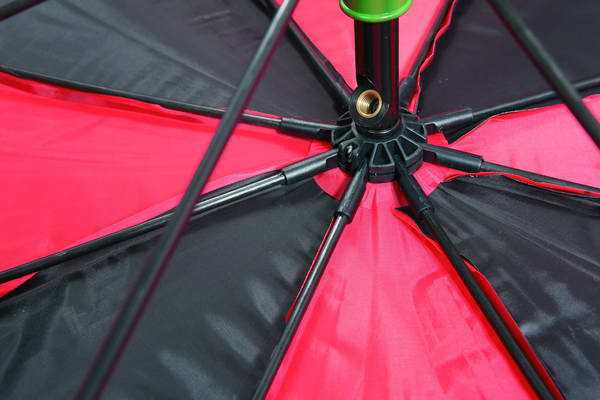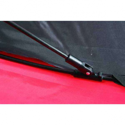 Klasický, velmi lehký deštník s nylonovým potahem v kombinaci černé a červené barvy. Je osazen kvalitním kloubem.