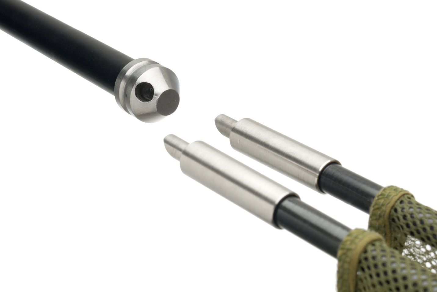 Luxusní kaprový podběrák se zpevněnými uhlíkovými rameny délky 1m a maximálně odlehčenou síťkou olivově zelené barvy. Středový spoj je frézovaný z nerezové oceli, stejně jako koncovky obou ramen.