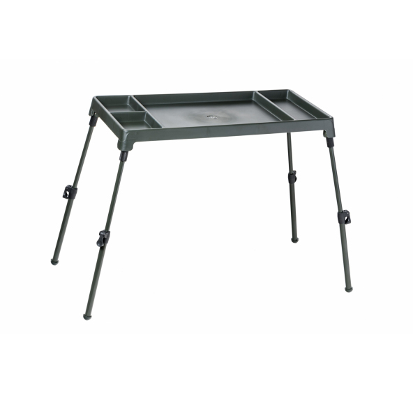 Velký kaprařský stolek s přihrádkami. Nohy s bajonetovým systémem výsuvu jsou aretovány šroubem v otevřeném stavu. Maximální výška stolku je 45 cm.