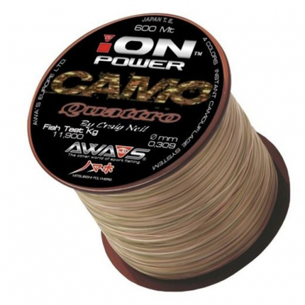 Awashima Ion Power Camo Quattro je vlasec vyvinutý pro absolutní neviditelnost na jakékoliv struktuře dna. AWA-Shima inženýři spolupracují dlouhou dobu s Mitsubishi továrnami Japonsko, od kterých využívají pro výrobu vlasců mnoho let Novamid polymer. Informace na obalech vlasců se odkazují na testy při rybaření, které musí být provedeny zkušenými rybáři, kteří zaručují provedení testů v nejnáročnějších podmínkách rybolovu.