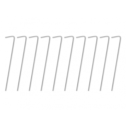 Delphin EazyPEGS je sada kolíků určená pro spolehlivé uchycení deštníku, bivaku či jiných typů přístřešků v různých typech terénu. Kolíky jsou vyrobeny z pevného a odolného kovového materiálu, který zajišťuje jejich dlouhou životnost a odolnost vůči vnějším vlivům. Díky univerzálnímu tvaru je lze jednoduše zapíchnout do většiny běžných povrchů. Balení obsahuje 10 kusů v uzavíratelném plastovém sáčku. Technické parametry: Materiál: Ocel Průměr: 3,15 mm Výška: 16 cm Délka háčku: 2,5 cm