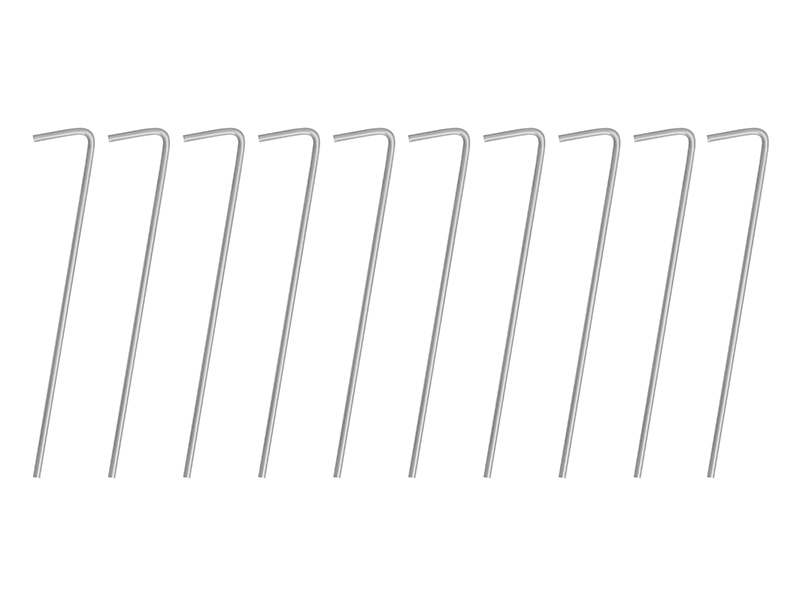 Delphin EazyPEGS je sada kolíků určená pro spolehlivé uchycení deštníku, bivaku či jiných typů přístřešků v různých typech terénu. Kolíky jsou vyrobeny z pevného a odolného kovového materiálu, který zajišťuje jejich dlouhou životnost a odolnost vůči vnějším vlivům. Díky univerzálnímu tvaru je lze jednoduše zapíchnout do většiny běžných povrchů. Balení obsahuje 10 kusů v uzavíratelném plastovém sáčku. Technické parametry: Materiál: Ocel Průměr: 3,15 mm Výška: 16 cm Délka háčku: 2,5 cm