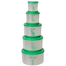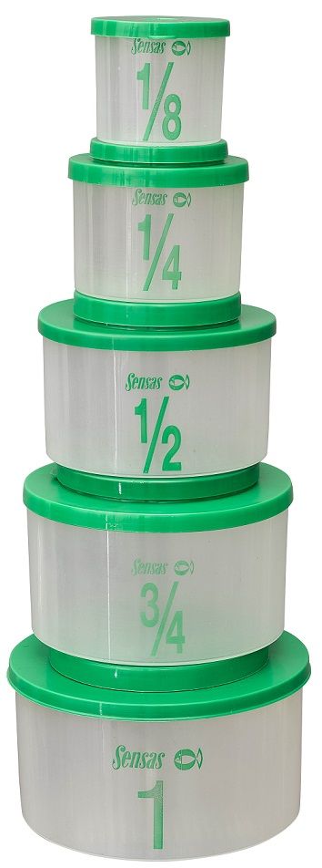 Sada měrných misek s víkem o velikostech 1 l, ¾ l, ½ l, ¼ l a 1/8 l. Každá krabička má ve víku, ale i na dně mikro dírky. Díky tomu lze do krabiček živou nástrahu pohodlněji naplnit. Nástrahy mají lepší přístup ke vzduchu a zejména v horkém počasí to prodlužuje jejich životnost.