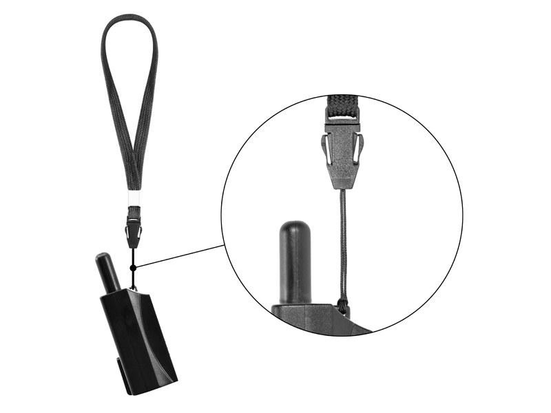V balení je dodáván i s praktickým popruhem, sloužícím k zavěšení.