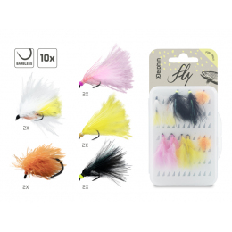 Sada umělých mušek určených zejména k lovu lososovitých ryb. V krabičce naleznete deset mušek v pěti ověřených vzorech navázaných ve výrazných barvách. Použité barevné kombinace jsou ideální zejména pro lov čerstvě nasazených ryb, pro které jsou doslova neodolatelné. Stejně dobře však často vydráždí k záběru i starší opatrnou rybu. Mušky jsou vhod...