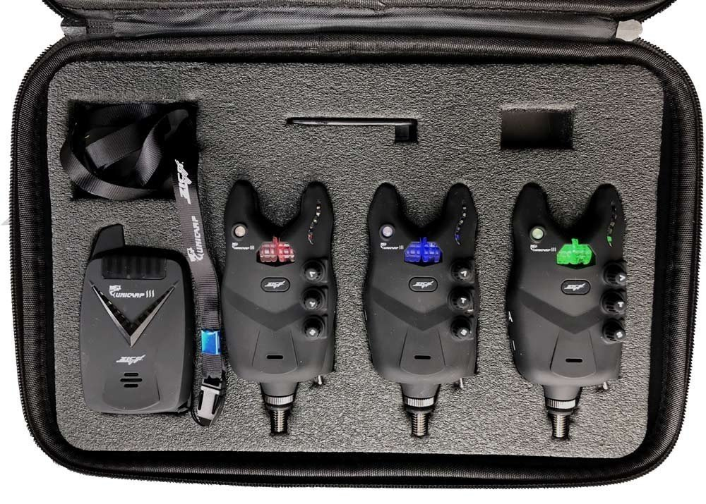 Celý popisSada v kufírku se třemi indikátory UNICARP III a přijímač (3+1)+ zkušební baterie, popruh na krk, držák přijímače na opasek~~Nový model UNICARP III s možností volby barvy navazuje na úspěšnou řadu indikátorů UNICARP. Do jeho originálně řešeného, kompaktního a voděodolného těla byla vložena elektronika té nejlepší kvality. Dvojitá kontrola výroby nám dovoluje poskytnout tříletou záruku, což řadí tento výrobek do vyšší kategorie na trhu. Unicarp III disponuje nejen originálním vzhledem, ale řadou UNI-kátních funkcí reflektujících potřeby předních kaprařů, ale reguje i na obecné požadavky běžných rybářů např. funkce "Incognito" -indikace záběru pouze na přijímači; "Lighthouse" pro lokalizaci lovného místa při zavážení, "Alarm" proti krádeži prutů; "Drop back" funkce- zpětný záběr (padák) indikovaný na "S" LED panelu a zvukem. Celé ovládání probíhá intuitivně tak jako u předchozího modelu. Pro přehlednost byl tento model vybaven pro zapnutí a vypnutí indikátoru páčkou. Zapnutím do polohy ON na "S" panelu navíc zobrazuje podíl dílků aktuálního nabití 9V baterie. Regulace hlasitosti "V", tónu "T" a citlivosti "S" je volena klasickými potenciometry se zobrazením hodnoty na "S" panelu. Modifikace nočního osvětlení, rolničky, paměťové diody a majáku je ovládáno tlačítkem - ZICO. Tímto se značně zpřehlednila volba jednotlivých funkcí a je zcela intuitivní. Napájení je řešeno 9V baterií, která je volně dostupná ve většině obchodech, nicméně životnost baterie určuje používání indikátoru. (vzdálenost mezi indikátorem a přijímačem, používání přední zavážecí diody apod.) Na přijímač lze snadno napárovat až 6 indikátorů s unikátním kódováním. Jednotlivé indikátory Unicarp III lze párovat i na předchozí přijímač setů UNICARP (ID UNI 2, UNI 3, UNI 4) a rovněž na přijímač UNICARP II a to stejným jednoduchým způsobem. Dostupnost pro jednotlivé indikátory řady Unicarp III je docílena prodloužením antény v jeho těle a dosahuje více než 200m. Vice o jednotlivých funkcích se dočtete v návodu viz."přílohy ke zboží" Výrobek se také dodává v kufírkových sadách 2+1, 3+1, 4+1 výhodou Unicarpu III je, že nemusíte vybírat barvu do vašeho setu, jelikož na Unicarpu III lze libovolně přepínat barvy- poslední zvolená se uloží do nastavení se svojí pozicí kanálu na přijímači (max 6 barev: žlutá, zelená, modrá, červená, fialová, bílá) ~~Technické parametry Indikátoru:~- Digitální technologie řízená mikroprocesorem~- MC - multicolor~- Regulace hlasitosti 0+4 úrovně~- Regulace tónu 5 úrovní tónu~- Regulace citlivosti 5 úrovní~- Vysoká viditelnost LED diod, s možností volby jasu~- LED diody s 20 vteřinovou pamětí~- Pohotovostní režim LED diod, noční osvětlení~- Integrovaný výstup na swinger, snag s 20s pamětí~- Funkce "Incognito" -indikace záběru pouze na přijímači ~- Funkce "Alarm" proti krádeži prutů~- Funkce "Incognito" a "Alarm" současně~- Funkce "Lighthouse" pro lokalizaci lovného místa při zavážení~- Indikace nabití baterie po zapnutí indikátoru~- "Drop back" funkce- zpětný záběr (padák) indikovaný na "S" LED panelu a zvukem~- Black chrom šroub s aretací pozice silnou gumičkou~- Voděodolné a pogumované tělo indikátoru~- Provozní frekvence pro bezdrátového vysílání: 433MHz, dosah 200m~- Provozní napětí: 9V (zkušební baterie 9V je součástí výrobku)~~3 roky záruka