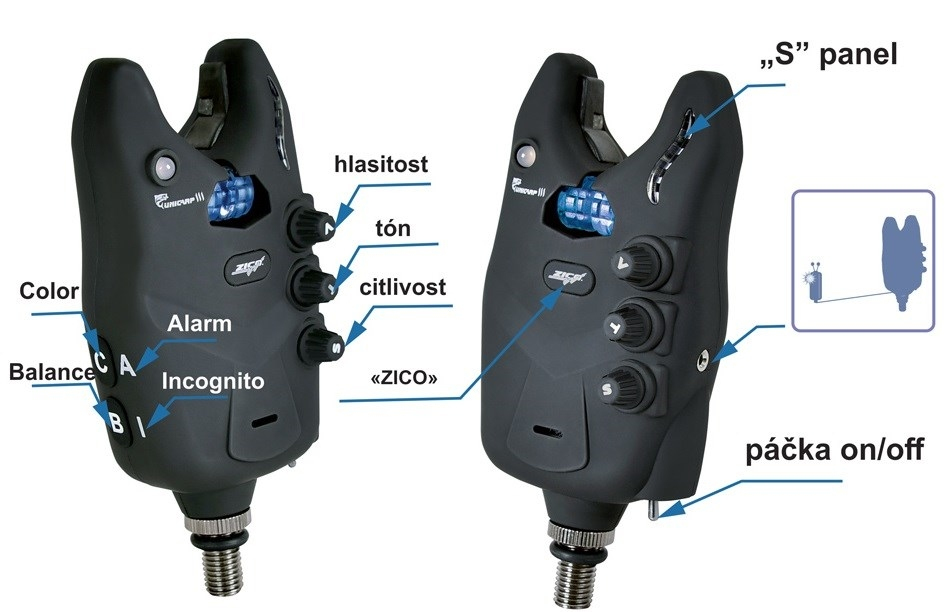 Celý popisNový model UNICARP III s možností volby barvy navazuje na úspěšnou řadu indikátorů UNICARP. Do jeho originálně řešeného, kompaktního a voděodolného těla byla vložena elektronika té nejlepší kvality. Dvojitá kontrola výroby nám dovoluje poskytnout tříletou záruku, což řadí tento výrobek do vyšší kategorie na trhu. Unicarp III disponuje nejen originálním vzhledem, ale řadou UNI-kátních funkcí reflektujících potřeby předních kaprařů, ale reguje i na obecné požadavky běžných rybářů např. funkce "Incognito" -indikace záběru pouze na přijímači; "Lighthouse" pro lokalizaci lovného místa při zavážení, "Alarm" proti krádeži prutů; "Drop back" funkce- zpětný záběr (padák) indikovaný na "S" LED panelu a zvukem. Celé ovládání probíhá intuitivně tak jako u předchozího modelu. Pro přehlednost byl tento model vybaven pro zapnutí a vypnutí indikátoru páčkou. Zapnutím do polohy ON na "S" panelu navíc zobrazuje podíl dílků aktuálního nabití 9V baterie. Regulace hlasitosti "V", tónu "T" a citlivosti "S" je volena klasickými potenciometry se zobrazením hodnoty na "S" panelu. Modifikace nočního osvětlení, rolničky, paměťové diody a majáku je ovládáno tlačítkem - ZICO. Tímto se značně zpřehlednila volba jednotlivých funkcí a je zcela intuitivní. Napájení je řešeno 9V baterií, která je volně dostupná ve většině obchodech, nicméně životnost baterie určuje používání indikátoru. (vzdálenost mezi indikátorem a přijímačem, používání přední zavážecí diody apod.) Na přijímač lze snadno napárovat až 6 indikátorů s unikátním kódováním. Jednotlivé indikátory Unicarp III lze párovat i na předchozí přijímač setů UNICARP (ID UNI 2, UNI 3, UNI 4) a rovněž na přijímač UNICARP II a to stejným jednoduchým způsobem. Dostupnost pro jednotlivé indikátory řady Unicarp III je docílena prodloužením antény v jeho těle a dosahuje více než 200m. Vice o jednotlivých funkcích se dočtete v návodu viz."přílohy ke zboží" Výrobek se také dodává v kufírkových sadách 2+1, 3+1, 4+1 výhodou Unicarpu III je, že nemusíte vybírat barvu do vašeho setu, jelikož na Unicarpu III lze libovolně přepínat barvy- poslední zvolená se uloží do nastavení se svojí pozicí kanálu na přijímači (max 6 barev: žlutá, zelená, modrá, červená, fialová, bílá)