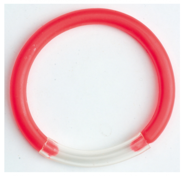 Meziočkové čihátko. V balení jsou dva kusy, jeden červený, druhý zelený. Kroužek je fluorescenční, po nasvícení světélkuje.