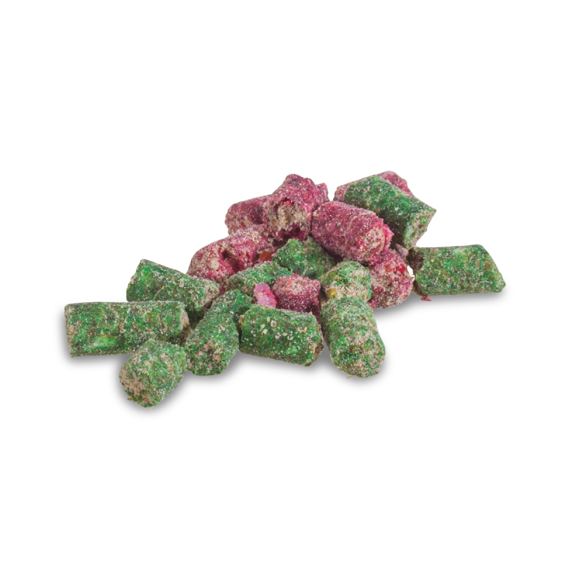 - Obsahuje proteinové vločky, pražená konopná semínka a malé vysoce proteinové pelety