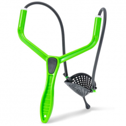 Klasický rybářský prak s pevnou gumou. Hodí se na krmení kukuřicí nebo červy.