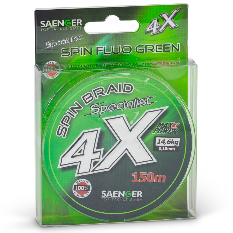 Saenger šňůra Specialist Spin Braid 4X 0,16mm 12,2kg 150m Fluo Green