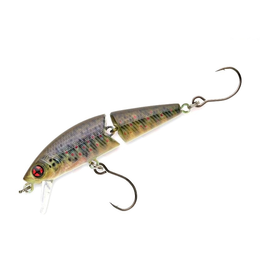 Vobler Phoxy Jointed, jak už sám název napovídá, je složen ze dvou částí a spojen kloubem, neboli jointem. Právě díky této zvláštnosti je velmi flexibilní a při plavání vykazuje zvlněný pohyb. Volný pohyb ve vodě je velmi reálný. Lineární plavání je dokonalé a odolné vůči vodním proudům. Je tedy na místě, že žádný z pstruhů tomuto houpavému plavání dlouho neodolá. Specifikace: - délka: 50mm - potápivý - potápivost do 1m - hmotnost: 3,7g - bezolovnatý