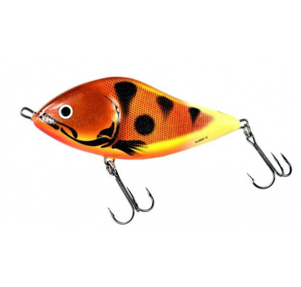 Wobler Salmo SLIDER, délka 5 cm, váha 6,5 g, plovoucí, hloubka ponoru 0,5 / 0,5 m, wobler bez lopatky, velkookého tvaru, má 2 trojháčky č.8. Svým pohybem imituje umírající rybku, převaluje se ze strany na stranu a dráždí dravce k útoku.