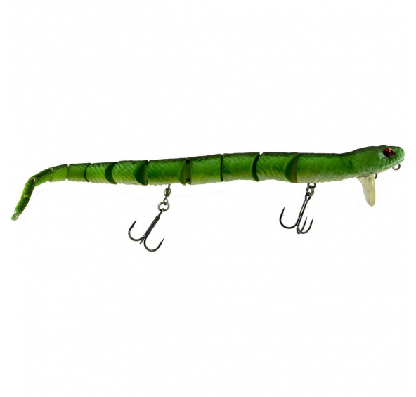 Skvělá imitace malého hada založená na detailním 3D skenování skutečného živého jedince, která vyniká velmi realistickou povrchovou akcí. Nástraha se pohybuje po křivce ve tvaru širokého S, a to na hladině nebo kousek pod ní, podle toho, kam na nástrahu přivážete vlasec.