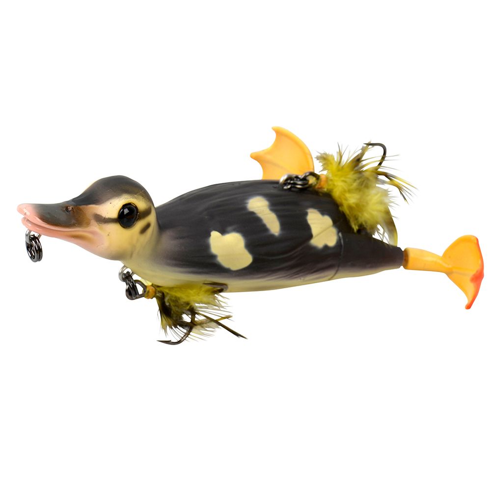 při navázání za hruď se pohybuje výše, jako když cítí paniku. Nástraha může být vedena rychle i pomalu, s dlouhými i krátkými pulsy, napodobení káčátka bude vždy dokonalé. Skvělá nástraha pro štiky, okouny a velké sumce! Když uvidíte lovit dravce na hladině, navažte sebevražednou kachnu a bojujte!