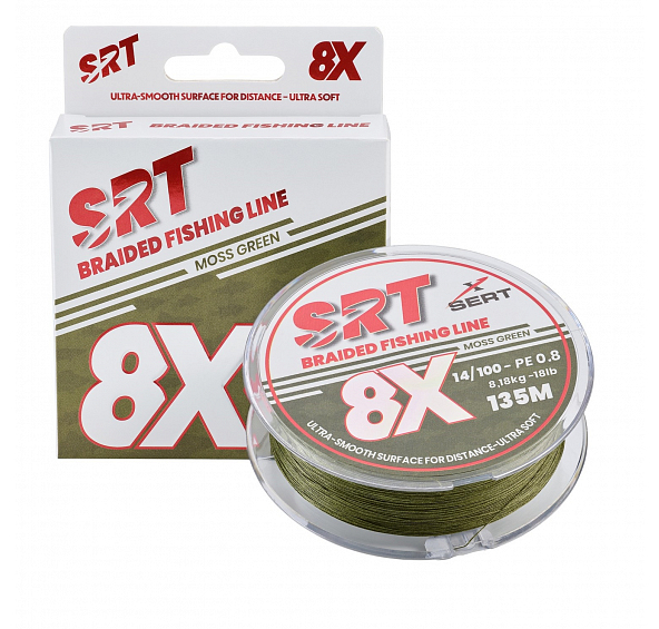 Popis produktu Sert splétaná šnůra 4X SRT Moss Green 135M|0,20mm/11,36kg