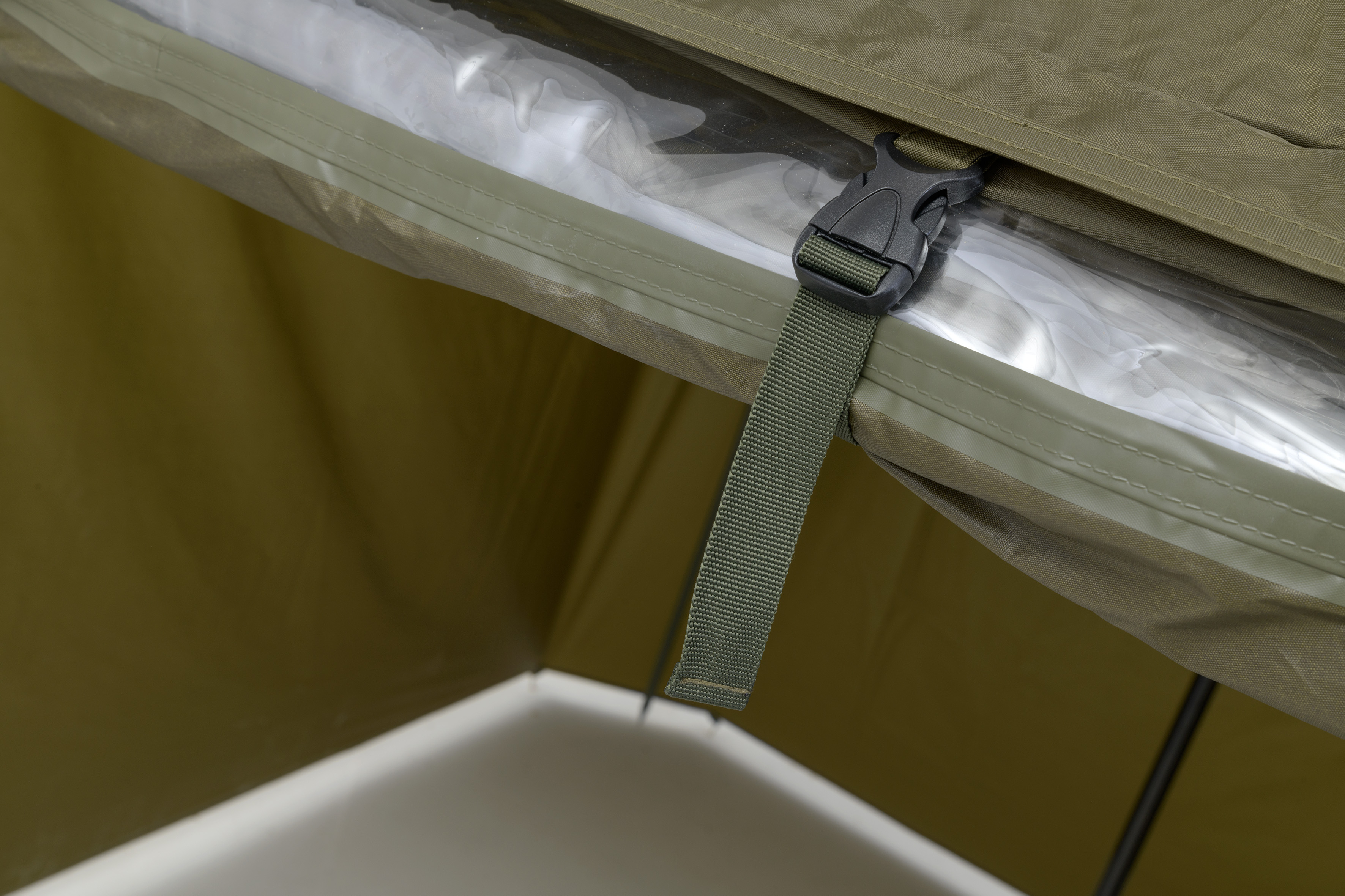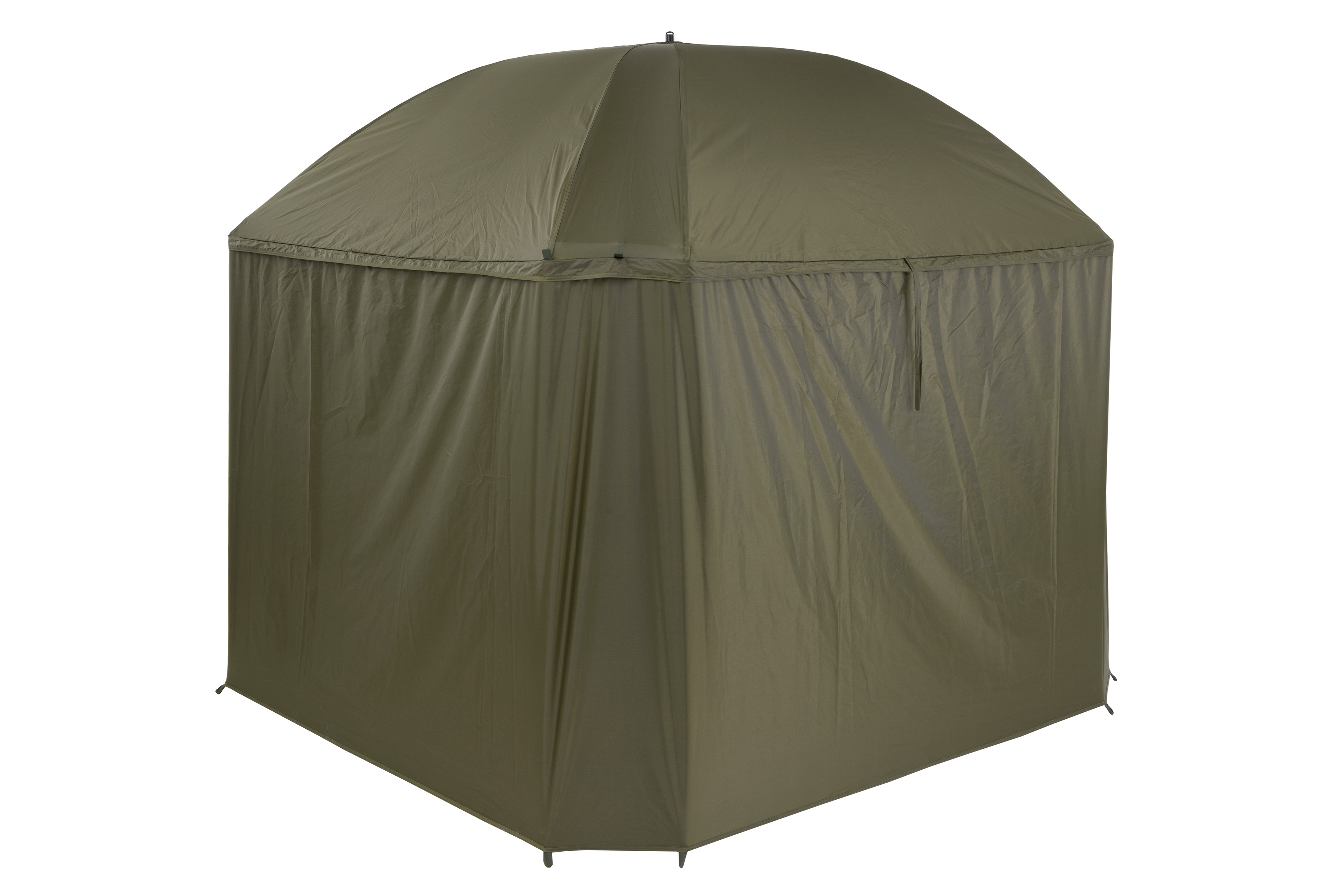 Celý popisKompletně zakrytý deštník čtvercového tvaru s obřími rozměry. Lze do něj umístit dvě velká rybářská lehátka. Rozměrům deštníku je plně přizpůsobena jeho konstrukce a použité materiály. Kostra je vyrobena z pevných a pružných laminátových žeber, které kromě vysoké tuhosti a stability zajišťují i velkou odolnost. Tu oceníte zejména při silném větru, kdy by standardní drátěná žebra byla zdeformována či zcela zničena. Kvalitní nylonový plášť nabízí velmi nízkou hmotnost, nekompromisní vodní sloupec 8000mm a kompletně podlepené švy. Bočnice je po celém obvodu připevněna robustním zipem, krytým okapničkou. Přední panel s rozměrným oknem lze snadno rozepnout a srolovat nahoru. Ve větrném počasí je možné deštník stabilizovat pomocí čtyř kotvících lanek. Součástí dodávky je i sada plnohodnotných bivakových kolíků pro perfektní ukotvení i v náročných podmínkách. Skvělým doplňkem tohoto deštníku je unikátní stabilizační sada do extrémních podmínek dodávaná samostatně.