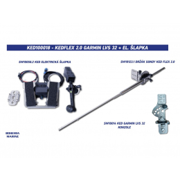 Součástí sestavy je nerezový držák sondy KedFlex 2.0, výměnná konzole Garmin LVS32 a elektrická šlapka.