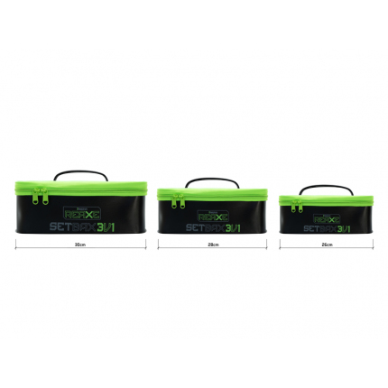 Celý popisDelphin REAXE SetBAX je praktická sada tří EVA tašek obdélníkového tvaru, které poslouží k uskladnění různého feederového vybavení nebo bižuterie.