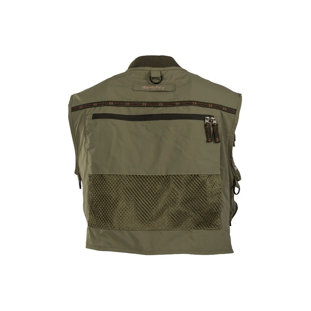 Tato vesta je vyrobena z dýchatelného, rychleschnoucího a lehkého materiálu. Specifikace: - v ramení části dýchatelná pěna pro lepší komfort a zpevnění - pletený límec - 2 hlavní přední kapsy box-design - 4 dodatečných předních kapes pro ostatní potřeby - 4 přední kapsy na zip - 2 vnitřní voděodolné kapsy - velká zadní kapsa - velká zadní kaspa na zip - v zadní části vesty D-očko a dvě postraní D-očka - Velcro snímatelný pás na suchý zip pro zip