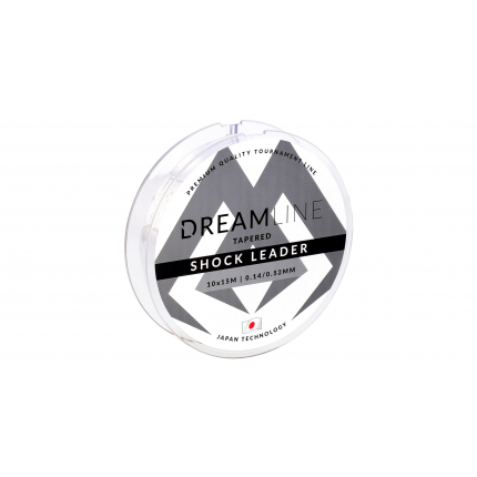 Ujímaný šokový vlasec Dream Line Shock leader je špičkový produkt pro daleké hody, zabraňující ztráty montáže při náhozu. Na cívce je 10 sad, každá 15 metrů. Má vynikající odolnost proti oděru.