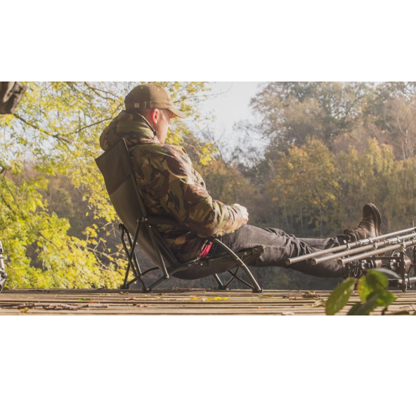 Křižný rám umožňuje rychlé a kompaktní složení. Díky dvěma měkkým, loketním opěrkám a nastavitelným nohám s širokými koncovkami do bahna, si toto pohodlné křesílko oblíbí každý rybář. Dodáváno v přepravním pouzdru.